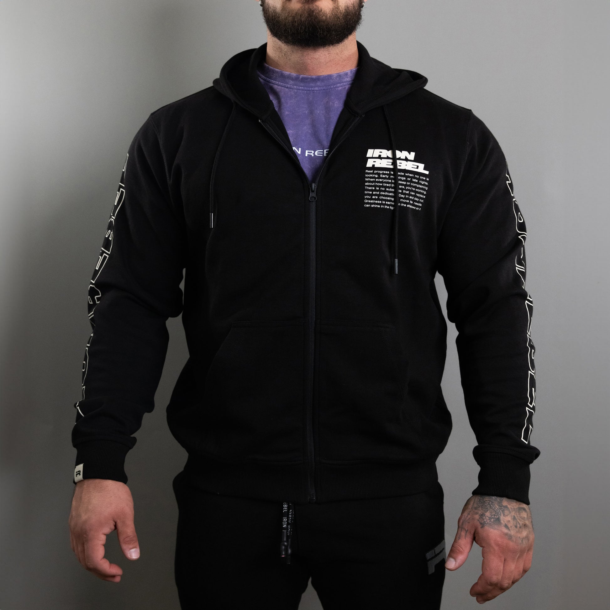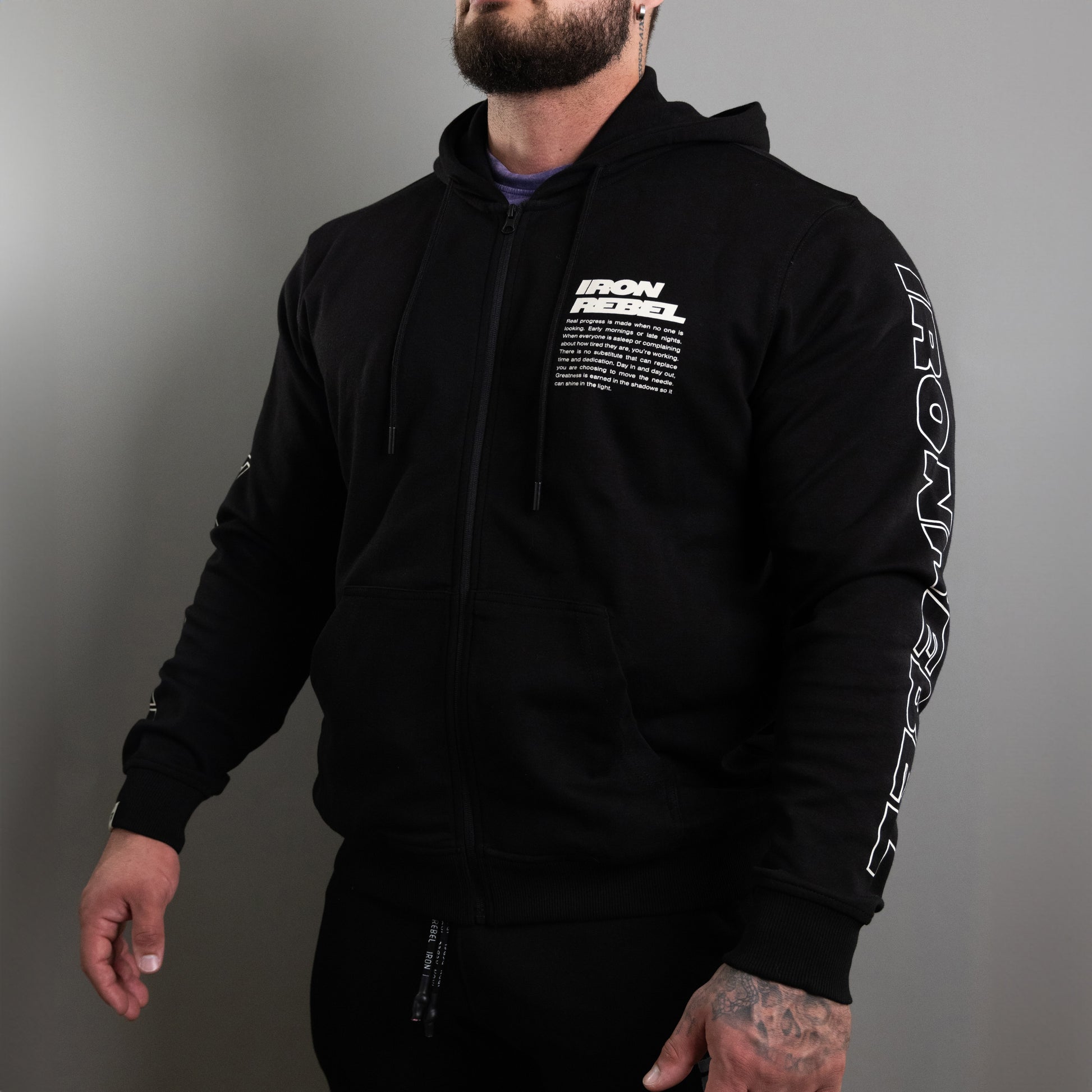 Gear up for greatness with the Progress Zip Hoodie in Black—your ultimate companion for workouts, warm-ups, and everything in between. This hoodie is specifically designed for bodybuilders, powerlifters, and fitness enthusiasts who demand comfort, functionality, and style in their gym attire.